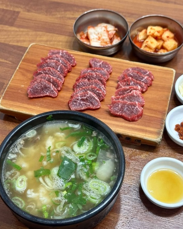 [추천 메뉴] 대표 메뉴인 '소국밥(8,500원)'은 소고기뭇국과 유사한 맑고 담백한 맛이 특징이에요. 국밥과 함께 쫄깃하고 신선한 '육사시미(11,000원)'를 곁들이는 조합이 특히 인기랍니다. 내장탕도 잡내 없이 얼큰하게 즐길 수 있어요.